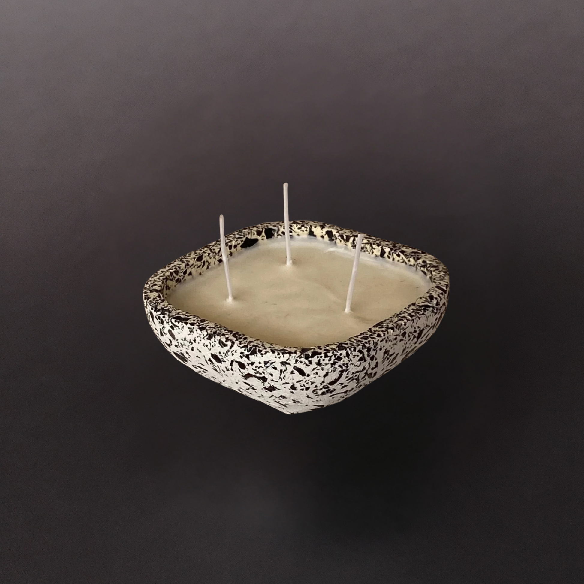 Nuestras velas de Tábano Home están hechas a mano con cera de soya 100% natural, lo que garantiza una combustión limpia y prolongada. Los cuencos están hechos a partir de piedra reconstituida como obsidiana y cuarzo. Ofrecen un diseño único y funcional, con formas geométricas y acabados de alta calidad. Cada vela incluye una mecha de algodón natural y está disponible en una variedad de aromas seleccionados para crear ambientes acogedores y elegantes.